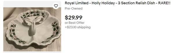 (Included photos show other online sellers selling the Royal bowl for $19.80+$9.95s/h and the 3-section dish for $29.99+$23.10s/h)