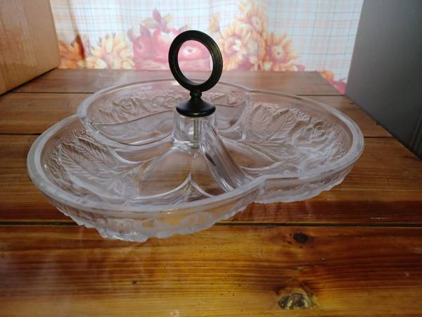3-section glass candy dish with rose pattern (Approx. 9"diameter x 1-1/2"h) $15
