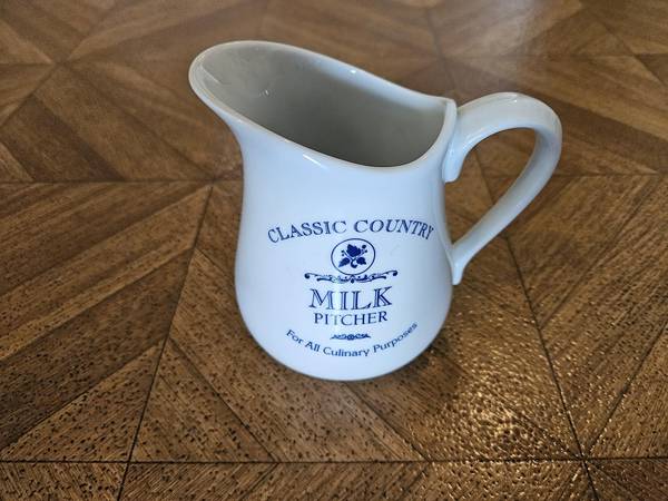 Design features reads: Classic Country Milk Pitcher For All Culinary Purposes