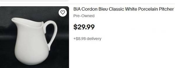 (The last photo shows another online seller is selling a single Bia pitcher for $29.99 + $8.98s/h)