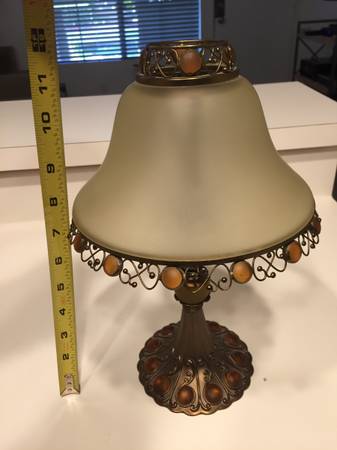 Party Lite Brand, New Vintage Style 3 Piece Mini Candle Lamp Set. Uses common tea cup size or standard candles. Perfect condition. Received as gift and never used. Lamp is approximately 12” tall /...