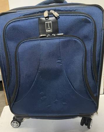 Here is an awesome suitcase from Travel Pro. This blue carry-on has the expandable center plus all the pockets and straps inside that you may need. It measures about 22" tall and 17" wide x 10" deep. The 4 wheels are extra sturdy and roll like butter. You know these are super expensive in stores. Come get it today!
