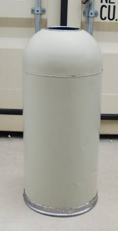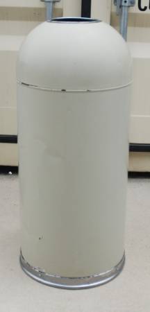 33" Tall Mid Century Torpedo Metal Trash Can by Safco. Made USA Still a little Schmutz around the bottom chrome collar. Cleanable just ran out of time.