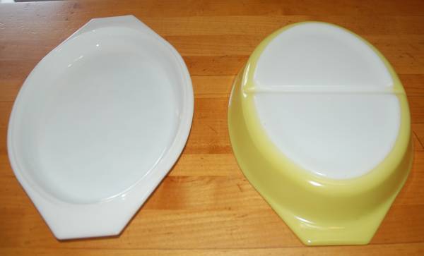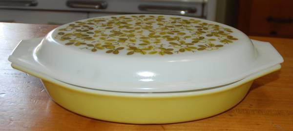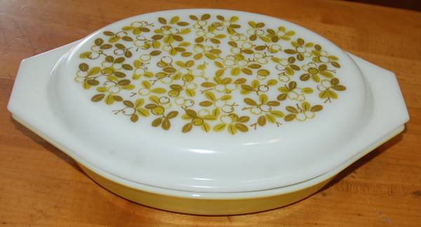 Pyrex Vintage 60s Olive Split number 15 Divided Oval 1 Qt Casserole Dish with Lid USA