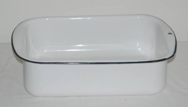 Rectangular Vintage Enamel White Black Rimmed Wash Tub. 17" x 12" x 4.5"