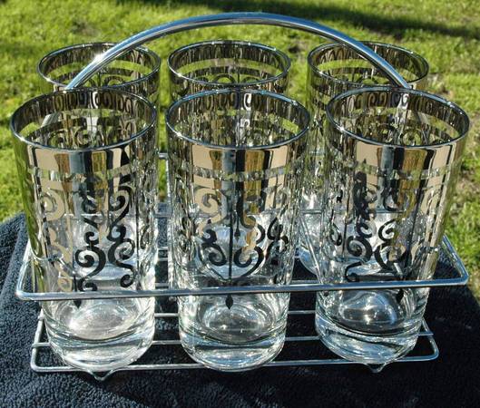 Silver Rim Vintage Glassware Swanky Barware Tumblers - Set of 6 With Carrier