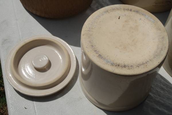 Stoneware Pottery Crock with Lid. 8.5" Tall x 8" Wide Crock singular one with lid.