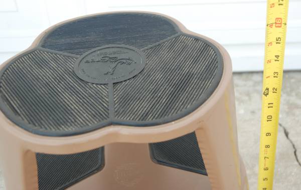 This Listing is for a metal step stool on three spring loaded wheels. This vintage step stool is a nice retro brown. This is not your Cheap Made in China Model...Made in USA. Use as a step stool in...