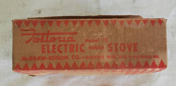 Vintage Fostoria Mcgraw-Edison Model 11 Hot Plate Table Stove W/Original Box Fostoria Electric Table Stove Model 11 McGraw-Edison Collectable. Tested. Heats up quick. 1940's -50's...