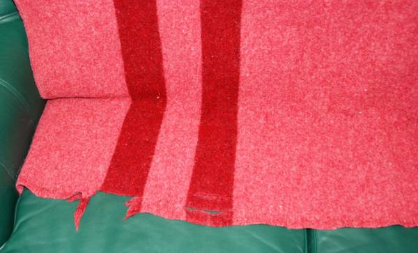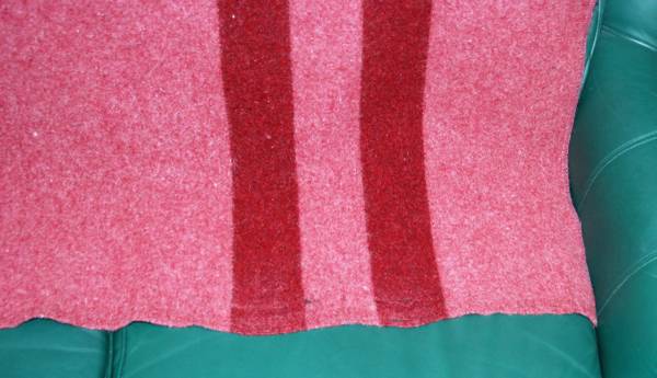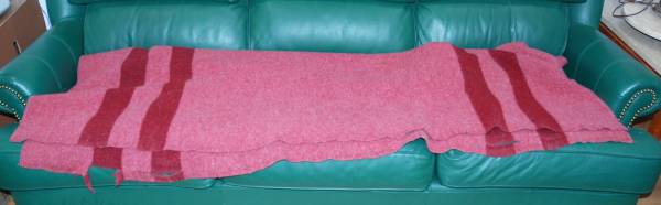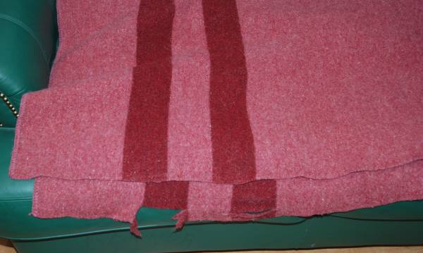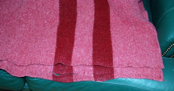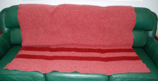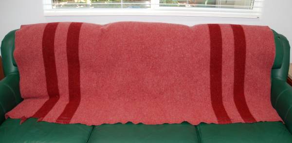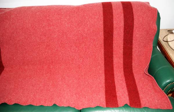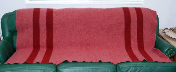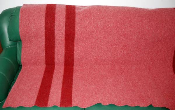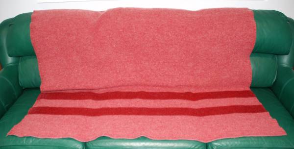 Vintage Wool blanket - Dusky Rose Red w Burgundy Stripes ~ 76 x 62~ Made in Canada