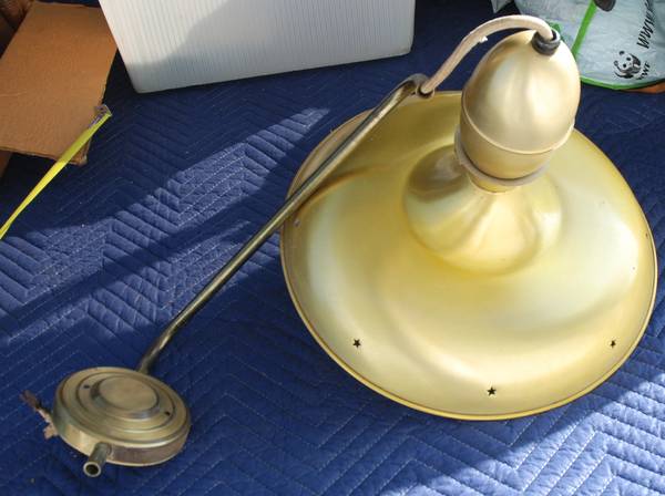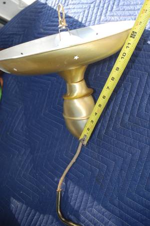 Vintage MCM Pull Down Retractable Saucer Sconces Light Fixture Atomic Age Light Arm holds the Lamp Approx. 15" from Wall Hangs 24" From top to Bottom and pulls another 24"Approx. Diffuser has a...