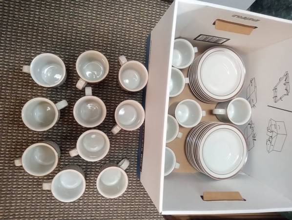 I have for sale a 32 piece set of Berkeley House 'Barbara 7271 style coffee cups and saucers in like new condition. I went through and didn't see any cracks or chips on each piece. This is really a nice stoneware set. The saucers are 5.5" inches, the cups are 3" inches dia. @ rim. See images for detail. No original box.