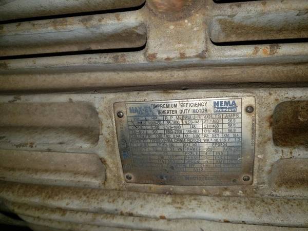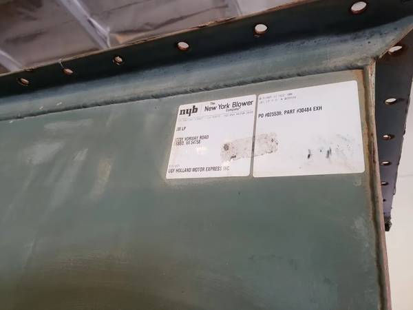 LOCAL PICK-UP OR BUYER IS RESPONSIBLE FOR FREIGHT New York Blower 50HP Blower, Size 362 PLR $2,950 460V, 60Cy, 3 Phase 50HP Nema Premium Inverter Motor 56.9 AMPS 1180-0980 RPM 27" PLR Wheel 40" x...