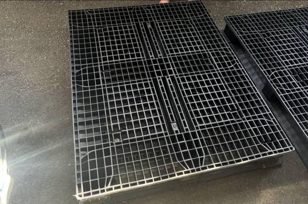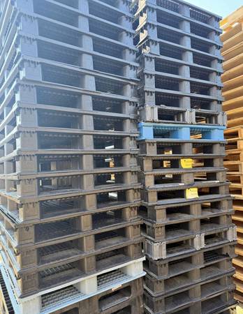 We carry these brand new heavy duty plastic pallets They measure 48x40 and are 6 inch tall Heavy duty, 3000 lbs. capacity Perfect for a shed base, koi pond filter, foundation $17.50 each Cash price...