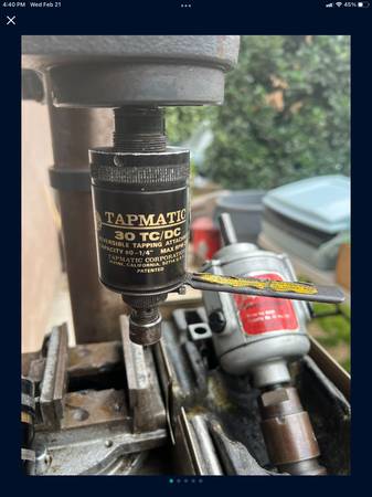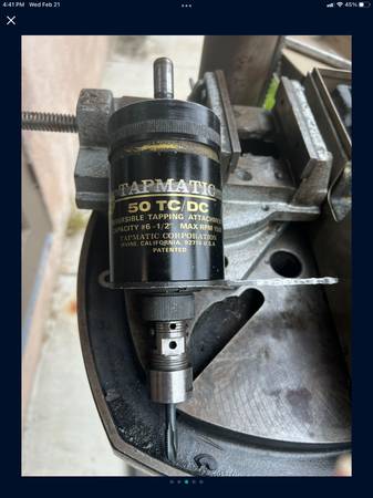 Craftsman 15” Drill Press with Rigid Supreme Versatapper #6100 tapping attachment, 50 TC/DC reversing tapping attachment and 30 TC/DC reversible tapping attachment tools. Total of 3 attachments...