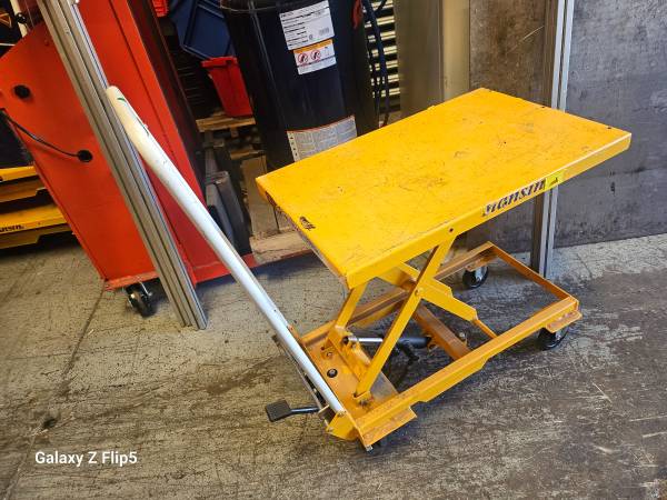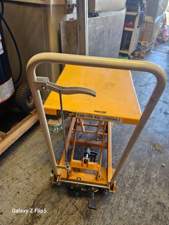 Used and in good condition scissor lift table. H 23'' and plate is 28" L by 18" W Capacity 330 LBS Price negotiable Asking $150 or best offer. MOTORCYCLE HYDRAULIC SCISSOR LIFT TABLE,...