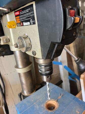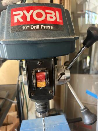 RYOBI- 10" Drill Press RYOBI DP101 120V AC • 3.0A -60H2 -570-3050 R.P.M. 10(13mm) BENCH DRILL PRESS See pictures Cash only No scammers Text only No bits included
