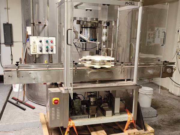 SGX50 Automation Cap Sealing Machine by Lattine, this is an automated single chuck capper that is set up for a quart bottle with a 28 mm lid. This was purchased as refurbished for project and the project was canceled. It is very clean and appears to have very little use. All of the enclosures are included and are stored on the side. If you have any questions please call 714-504-347nine