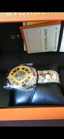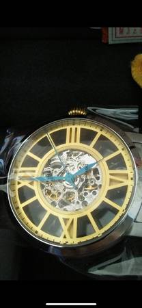Sharp "skeleton" style. Never worn; still in original gift box so it would make a stylish gift for that special man in your life. Can dress up his attire or be worn with casual wear. Cash only.