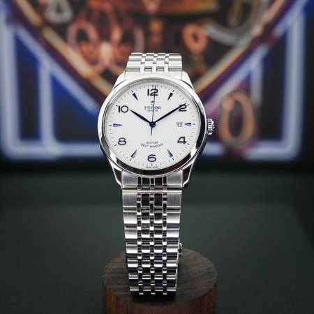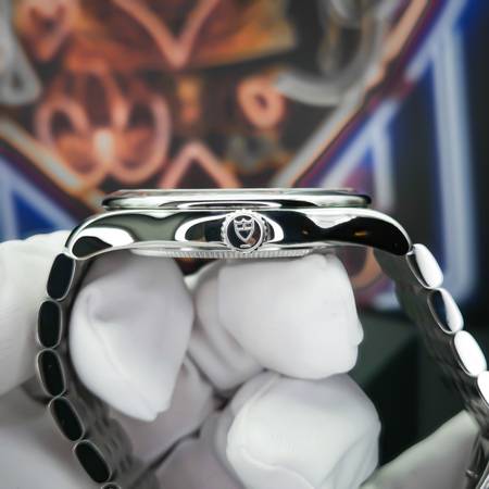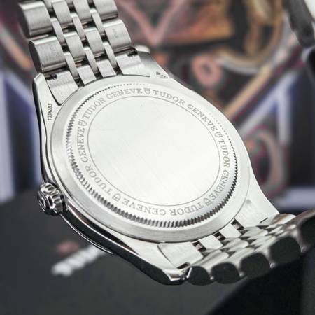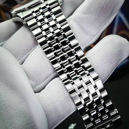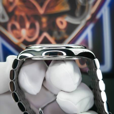 This timepiece is in great pre-owned condition. There are very light scratches on the bracelet, caseback, and case. Overall, the piece is ready to be worn straight from the box.