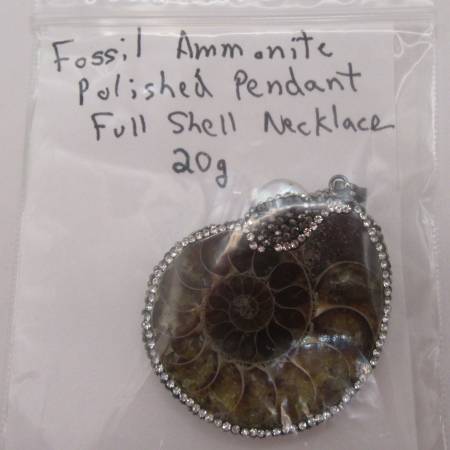 Own this unique piece of vintage Jewelry. A necklace pendant (no chain is included) featuring the fossilized shell of an ammonite, an extinct marine mollusk. Ammonites were ancient marine cephalopods with distinctive spiral, chambered shells, closely related to modern-day nautiluses, octopuses, and squid. They thrived in ancient oceans nearly 350 million years ago.