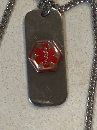Medical Identification Necklace - Preowned with very minor scratches on the tag - see photos.