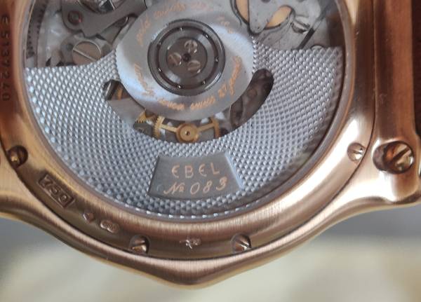 Limited edition genuine Ebel Chronograph rose gold watch with glass back, #83 of 199. 2 brand new set of genuine crocodile bands included. Original owner with manual and box.