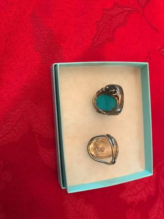Vintage Turquoise and silver RINGS. $25 EACH. Silver plate and Real silver. See all photos for different angles of rings. Size 6-7? Large. No flaws. Daytime pickup in Orange. See map. Text for address. Between 9am and 3pm. By appointment only.