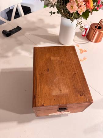 Solid wood with dovetail joints and original KIWI label. Comes with the classic foot stand legs and working latch. Great as a décor piece, storage box, or for actual shoe polishing.