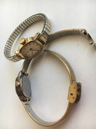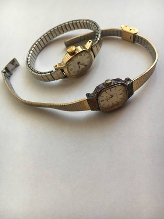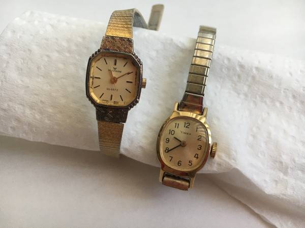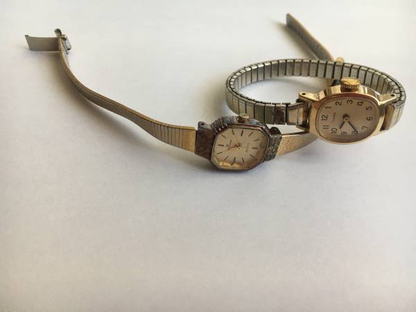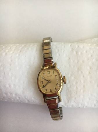 - Timex on a small stretch gold-tone band - from the 70s - $10 OBO