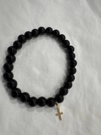 Black Beaded 7.5” UNISEX Bracelet with 18K Plated Cross - jewelry -...