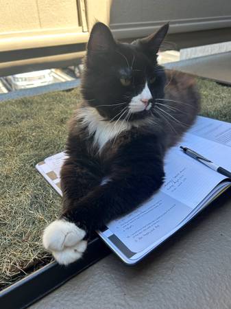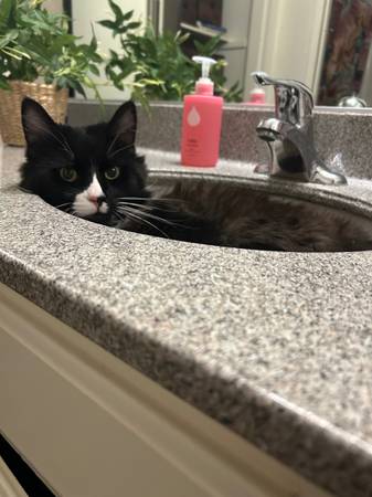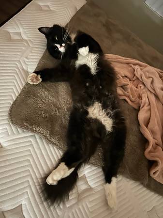 Large - almost main coon sized - tuxedo boy cat , graying fur around the belly. He's very vocal and sometimes friendly. Name: Louie. Last seen morning of Thursday 9/9.