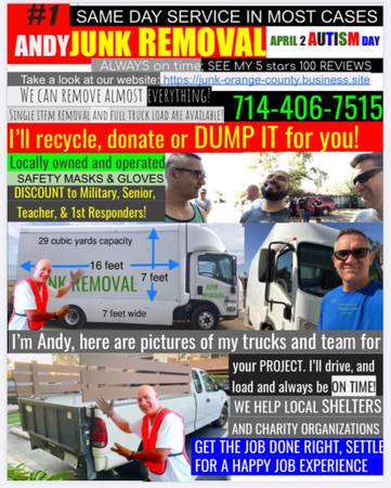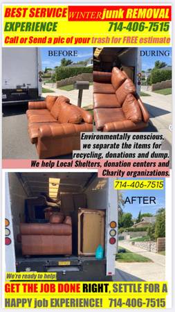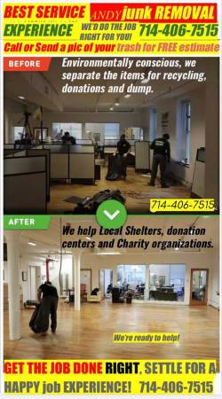 We provide Junk Removal services to all of Orange County and same LA County areas, to Property Owners/Tenants/Business Owners to ensure PROPER DISPOSAL of all your unwanted items.