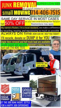 Our names are Ezequiel and Ruben and weโre Newport residents. We're a local family own business, JUNK REMOVAL ALWAYS ON TIME. Trash Hauling and Junk Removal. We started this small business to help local residents and business in ALL Orange County.