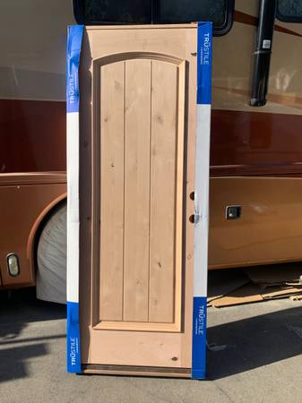 Raised molding, one panel, Tru-stile (marvin) with Arch top knotty, alder wood prehung fire door Unit size 33. 5 x 82 1/2”, in swinging door , weatherstripping ,threshold , And 2 self closing hinges . right hand 20 minute Fire label on frame and door.