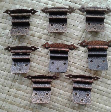 VINTAGE COPPER OR COPPERTONE EMPOSED HINGES (never used) SET OF 8 $10. NO EMAILS! WILL NOT ANSWER IS IT STILL AVAILABLE ETC.! area code (714) three two two-five three five nine