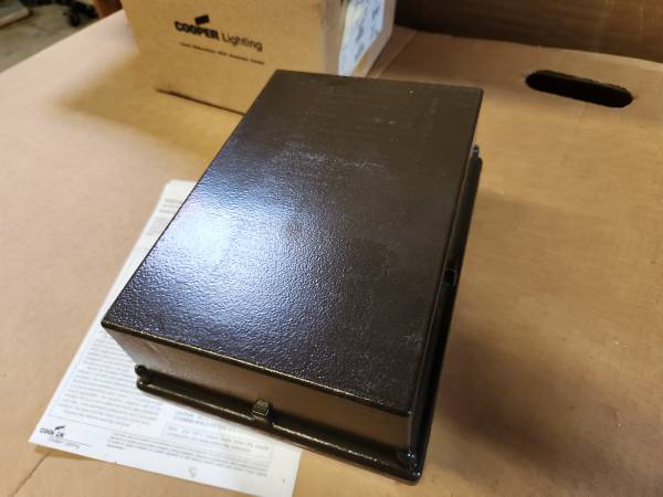 COOPER LIGHT LUMARK PLVR-PC-56-120V-LL OUTDOOR LIGHT, NEW open box. weighs over 9#s. One bulb included. $100 OBO. show contact info