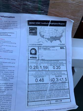 White Milgard Trinsic slider, clear Suncoat Max glass,with screen. nail on new construction. egress