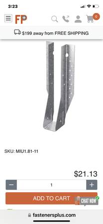 28 Simpson MIU1.81/11 face mount I joist hanger 1 3/4” x 11 $280 20 Simpson ITS1.81/9.5 top mount I joist hangers $200 6 Simpson Microllam hangers HUS1.81/10 $60