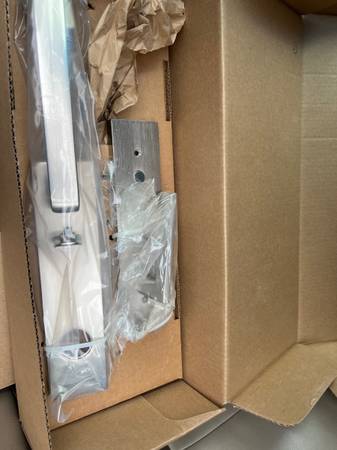 New Emtek Davos 4818HLUS15 handleset satin nickel US15 left hand and The handle is the same on both sides so it is reversible. also the dummy set 4808HLUS15