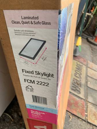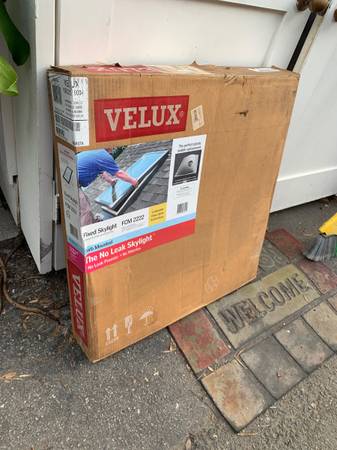 1 Velux laminated FCM 2222 fixed skylight , no blinds, 2222 Curb mount 22 1/2” x 22 1/2” inside curb dimension insulated quiet Laminated safety glass All new Velux Skylight now, come with...
