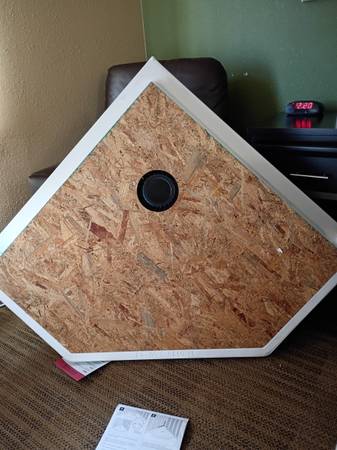 Delta 38-1/2 in. x 38-1/2 in. Neo-Angle Single Threshold Corner Shower Base in White. does have a slight crack at one end