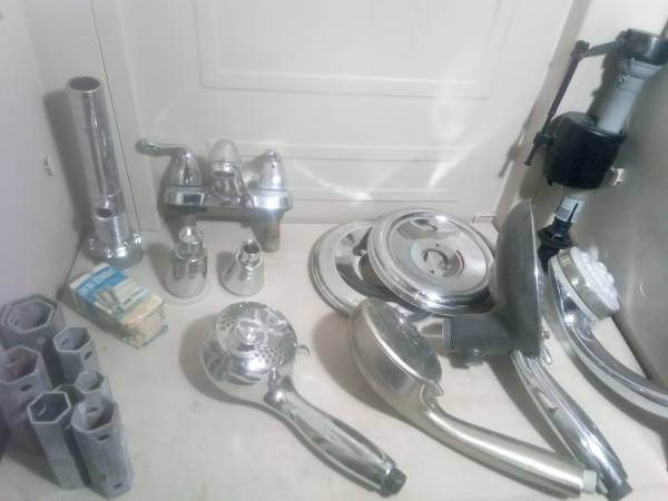 Plumbing supply and tools. Like shower heads, splash plates , toilet guts,. This collection would be good for Apartment maintenance/ Handyman