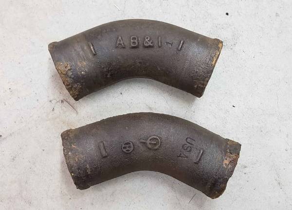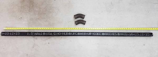 1.5 inch Cast Iron pipe NEW (71 inch long) and two 1.5 inch 45 degrees elbows(used good).Made in USA