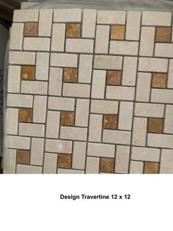 Square design travertine 12 x 12 selling at the store $15.98 (we have 17 pieces)