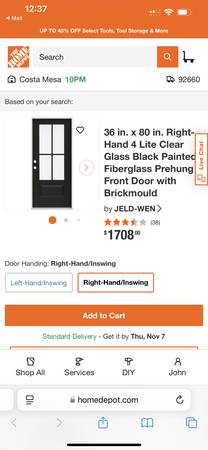 3' x 6'8" four light prefinished exterior door - $480 (Newport Beach)