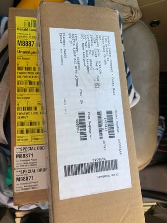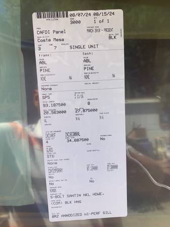 New 1 - 3’ X 8’ Anderson E Series black clad left hand inswing Patio Door , stain grade pine inside, with 4 point satin nickel lock hardware, clear low E4 argon insulated glass , unit size 36 1/2” x 96” x 4 9/16 nail on new construction