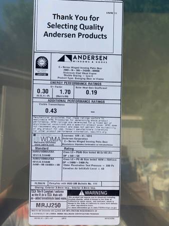 3 x 8’ Inswing Andersen patio door - $1,460 (Newport Beach)