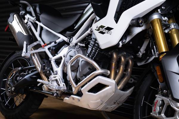 The 2023 Triumph Tiger 1200 Rally Pro is a premium large capacity adventure bike finely tuned for serious long distance and off road riding. Its new 1160 cc T-Plane triple engine delivers a robust 147 hp and 130 Nm of torque, combining low end tractability with thrilling top end performance.