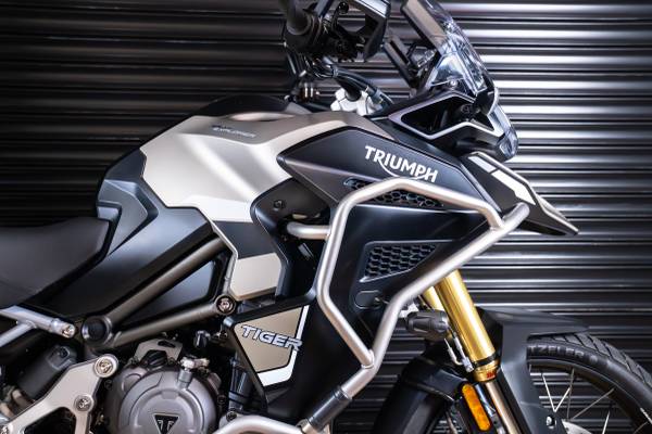 The 2024 Triumph Tiger 1200 Rally Explorer is the pinnacle of big-bore adventure bikes, combining serious off-road prowess with long-haul touring comfort. It features a refined 1,160 cc T plane triple engine, now tuned for smoother low‑rpm torque and a slicker clutch feel. Its rugged chassis includes tubeless spoked wheels (21″ front, 18″ rear), Showa semi active suspension with 220 mm travel, and an innovative “Active Preload Reduction”